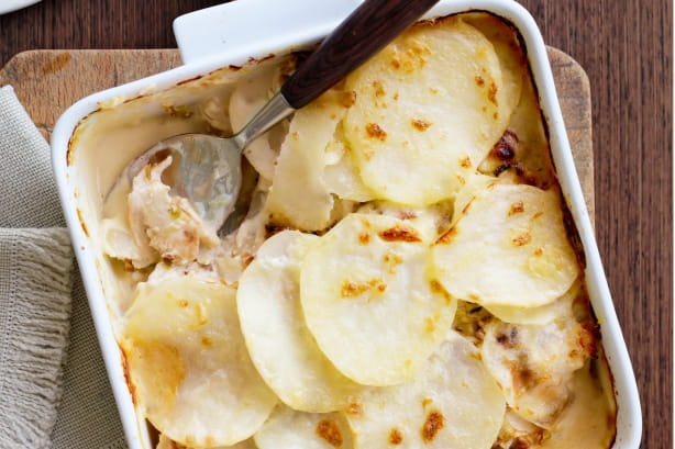 5. Cut the potatoes into thin slices and then arrange and layer on the top.