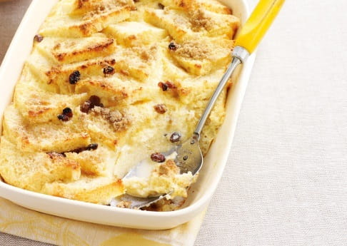 2. Arrange half of the bread, spread side up, on the base of an ovenproof dish